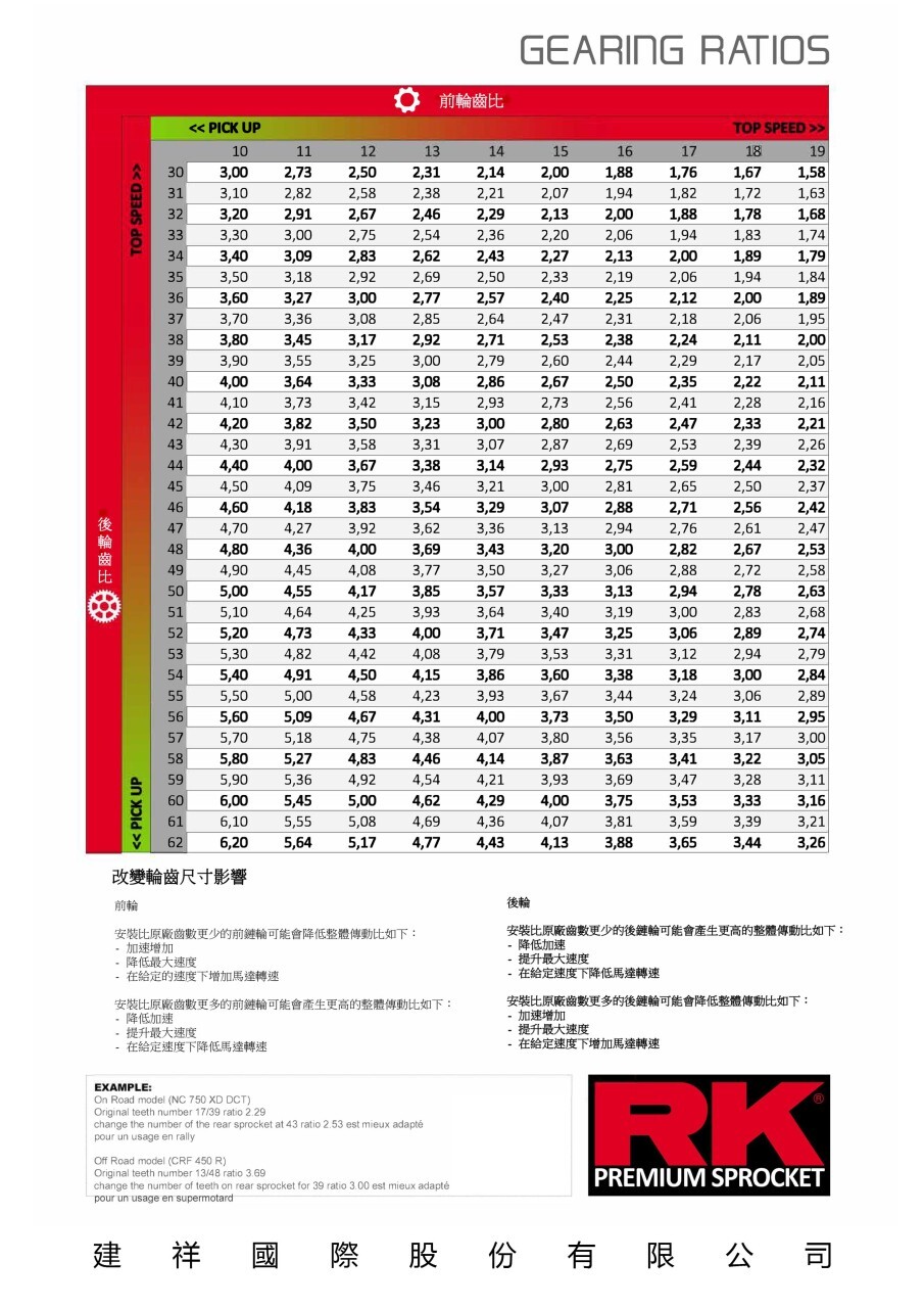 RK齒盤齒比對照表